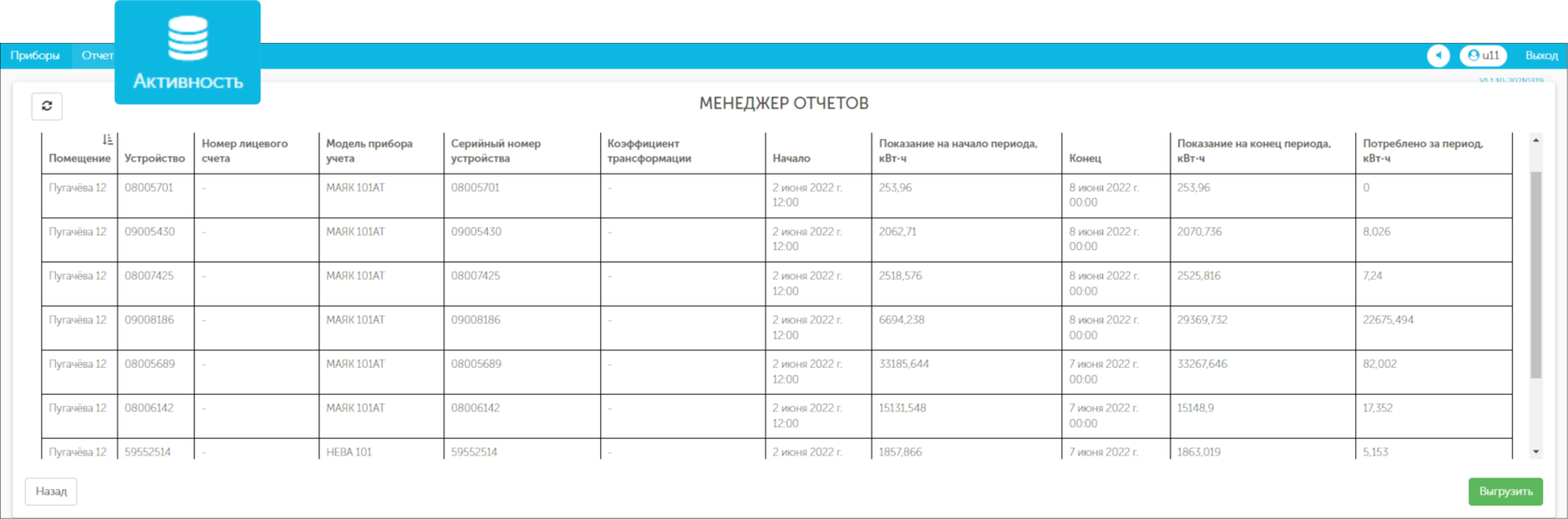 устройства снимают показания, система аналитики обрабатывает и структурирует показания, выдает информацию в онлайн